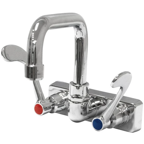 Advance Tabco K-206 6″ Wall Mounted Extended Spout Swivel Faucet With 4″ Centers And Wrist Handles