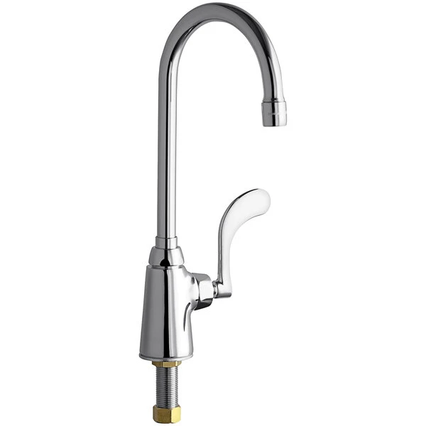 Chicago Faucet Company Chicago Faucets 350-E35-317XKABCP Deck-Mounted Single-Hole Single-Supply Faucet With 5 1/4″ Rigid / Swing Gooseneck Spout