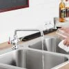 Chicago Faucet Company Chicago Faucets 50-DJ26ABCP Deck-Mounted Single-Hole Manual Sink Faucet With 26″ Double-Jointed Swing Spout