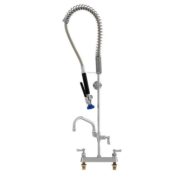 Fisher 35963 Deck Mounted Stainless Steel Pre-Rinse Faucet With 8″ Centers, 30″ Hose, 6″ Add-On Faucet, Inline Vacuum Breaker, And Wall Bracket