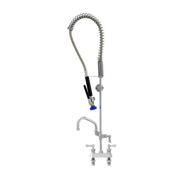 Fisher 36080 Deck Mounted Stainless Steel Pre-Rinse Faucet With 4″ Centers, 30″ Hose, 6″ Add-On Faucet, Inline Vacuum Breaker, And Wall Bracket