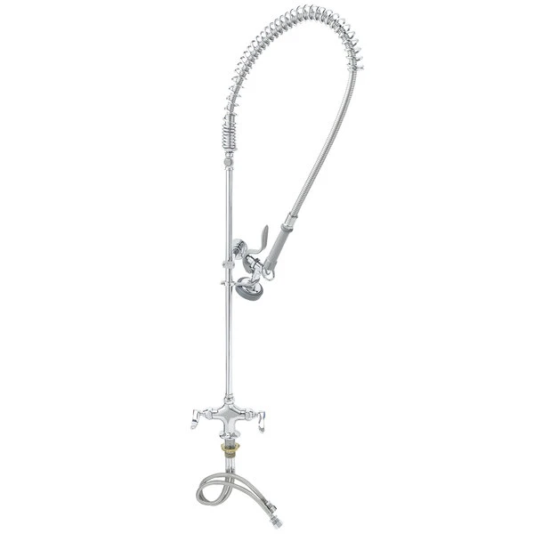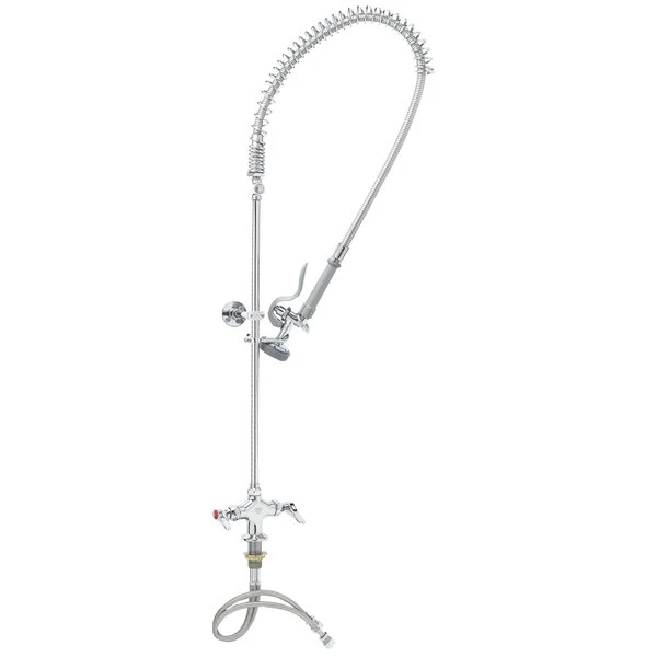 T&S Brass And Bronze Works T&S B-0113-B-TEE EasyInstall Deck Mounted 44 1/4″ High Pre-Rinse Faucet With Flex Inlets, 44″ Hose, Tee Assembly, And 6″ Wall Bracket