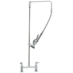 T&S Brass And Bronze Works T&S B-0121 Deck Mounted 38 3/8″ High Pre-Rinse Faucet With Adjustable 8″ Centers, Swivel Arm, And 20″ Hose
