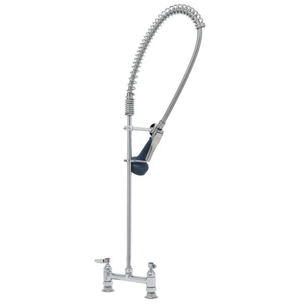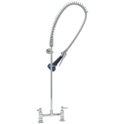 T&S Brass And Bronze Works T&S B-0123-B08C EasyInstall Deck Mounted 41 3/4″ High Pre-Rinse Faucet With Adjustable 8″ Centers, Ergonomic Low Flow Spray Valve, 44″ Hose, And 6″ Wall Bracket