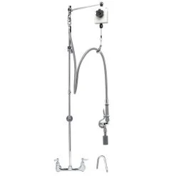 T&S Brass And Bronze Works T&S B-0130 Wall Mounted 53″ High Pre-Rinse Faucet With Adjustable 8″ Centers, Quick Connect Spray Valve, Balancer, 68″ Hose, Vacuum Breaker, And 6″ Wall Bracket