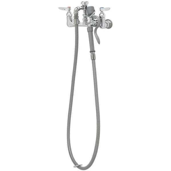 T&S Brass And Bronze Works T&S B-0167-J Wall Mounted Faucet With 1.07 GPM Spray Valve, 68″ Hose, And 8″ Centers