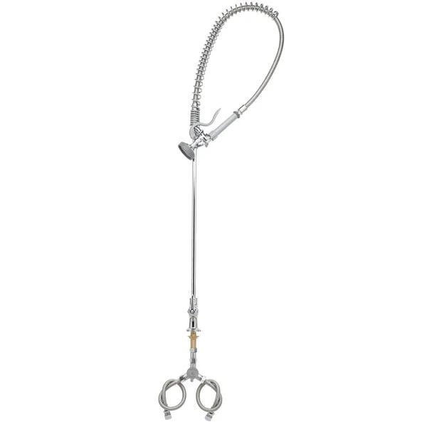 T&S Brass And Bronze Works T&S B-0173-BR Deck Mounted 42 1/4″ High Pre-Rinse Faucet With Flex Inlets, 44″ Hose And Wall Bracket