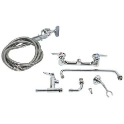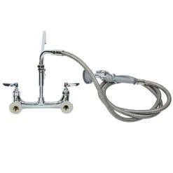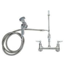 T&S Brass And Bronze Works T&S B-0175 Wall Mounted Pre-Rinse Faucet With Adjustable 8″ Centers, Angled Spray Valve, 104″ Hose, 12″ Add-On Faucet, 90 Degree Swivel Adapter, And Wall Hook