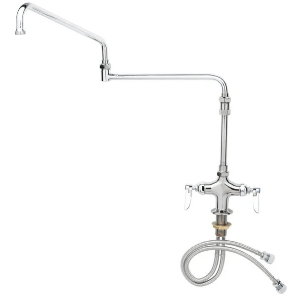 T&S Brass And Bronze Works T&S B-0268-04 Deck Mounted Single Hole Pantry Faucet With Flex Inlets, 24″ Double Jointed Swing Nozzle, Eterna Cartridges, And 7 5/8″ Extension
