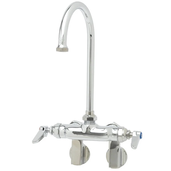 T&S Brass And Bronze Works T&S B-0341 Wall Mounted Mixing Faucet With 4″ Adjustable Centers, 5 11/16″ Swivel Gooseneck, And Eterna Cartridges