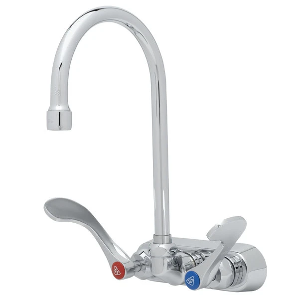 T&S Brass And Bronze Works T&S B-1146-04-CR Wall Mounted Workboard Faucet With 4″ Centers, 5 3/4″ Gooseneck Spout, 2.2 GPM Aerator, Cerama Cartridges, And Wrist Handles