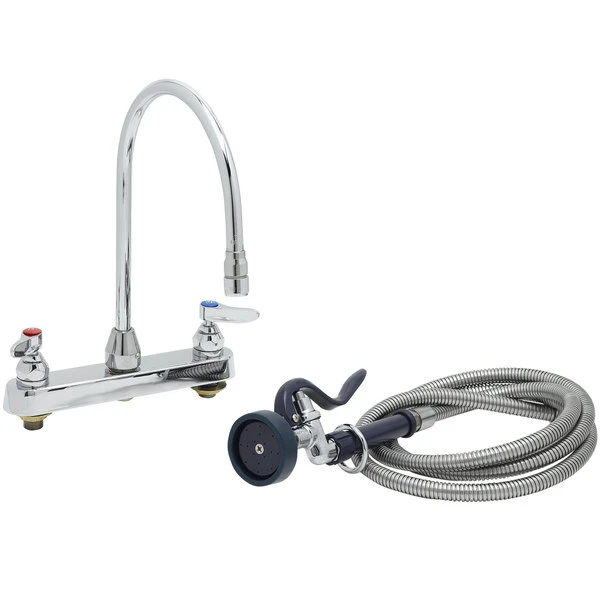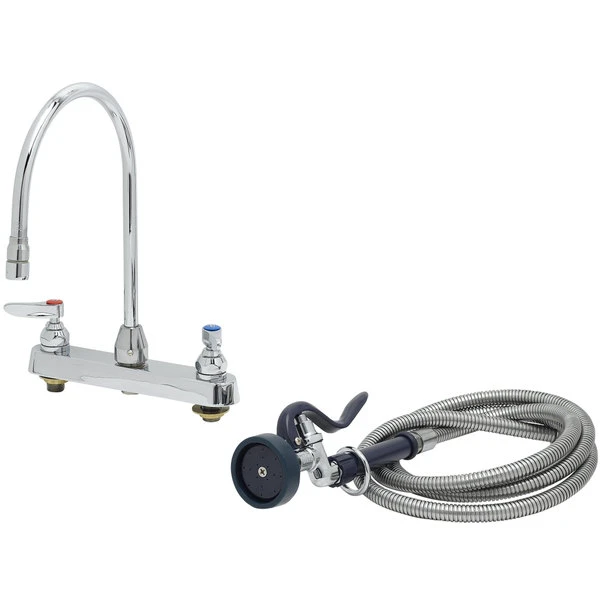 T&S Brass And Bronze Works T&S B-1172-96-135X Deck Mount Workboard Faucet With 8″ Centers, 8 13/16″ Gooseneck Spout, 96″ Hose, And EB-0107 Spray Valve