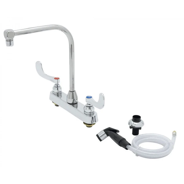 T&S Brass And Bronze Works T&S B-1175 Deck Mount Workboard Faucet With 8″ Centers, 8 3/8″ Gooseneck Spout, And Sidespray