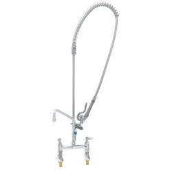 T&S Brass And Bronze Works T&S B-2430 Wall Mounted 42″ High Pre-Rinse Faucet With Adjustable 8″ Centers, 54″ Hose, And 12″ Add-On Faucet