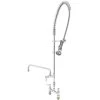 T&S Brass And Bronze Works T&S B-5110-12-CRB8P 45 3/16″ High Deck Mounted DuraPull Pre-Rinse Faucet 4″ Workboard Centers, 30″ Hose, 1.07 GPM Spray Valve, 12″ Add-On Faucet, And Wall Bracket