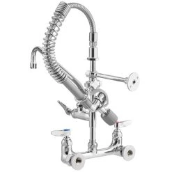 T&S Brass And Bronze Works T&S MPY-8WLN-12-4C EasyInstall Wall Mounted 21″ High Mini Pre-Rinse Faucet With Adjustable 8″ Centers, Low Flow Spray Valve, 24″ Hose, 12″ Add-On Faucet, 4-Way Accessory Cross, And 6″ Wall Bracket