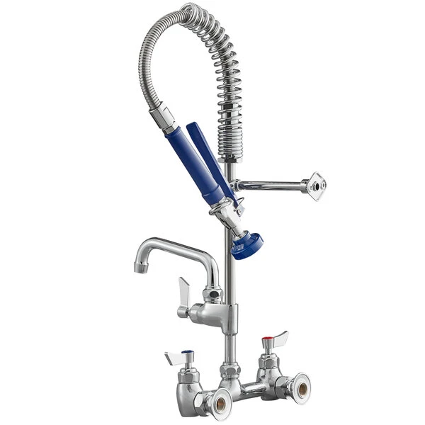 Waterloo 1.15 GPM Low Profile Wall-Mounted Pre-Rinse Faucet With 8″ Centers And 6″ Add-On Faucet